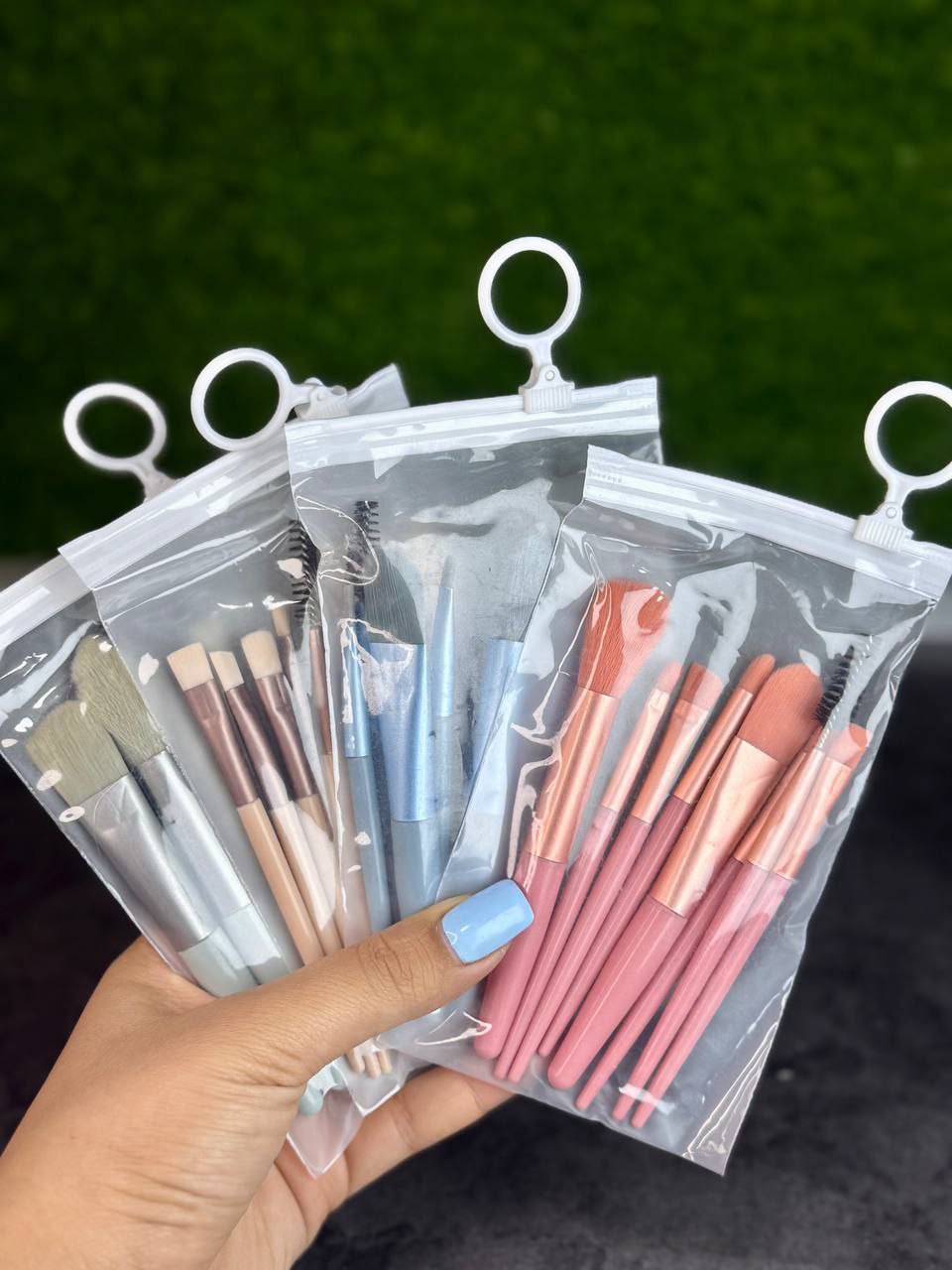 ست براش آرایشی 8 تکه مینی سایز به علاوه ۱ عدد کیف دارای مجموعه ای از براش های کاربردی برای آرایش صورت می باشد. این ست دارای 2 عدد براش بزرگ و 6 عدد براش کوچک است که برای تمامی مراحل آرایشی از جمله کرمپودر، کانسیلر، پرایمر، برانزر، هایلایتر، کانتور و … به کار می روند. ست براش 8 تکه اورجینال سایز مینی دارای براش هایی با موهای طبیعی و نرم و متراکم می باشد که ریزش نیز ندارند. این براش ها کیفیت بالایی داشته و سبب می شوند تا مواد آرایشی به طور یکدست و یکنواخت روی پوست پخش شوند.